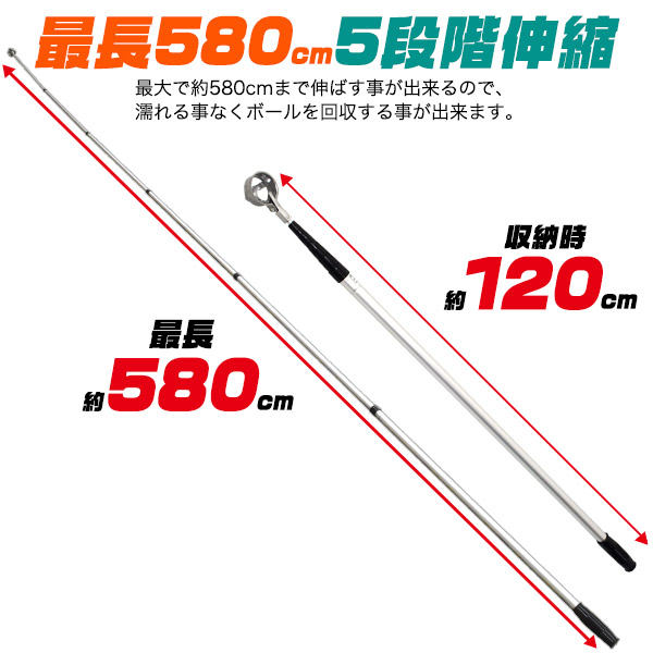 最大580cm ゴルフボールピッカー ロング ゴルフボール回収機 伸縮性 ゴルフ場で池ポチャのボールも楽々回収 ゴルフ場 ボール回収機 伸びる アルミ合金製 球拾い 送料無料