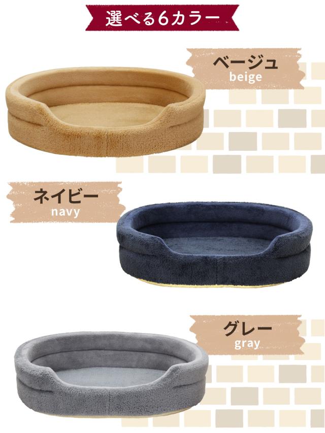 猫、犬用のふかふかでぬくぬく楕円型ペットベッド♪2種類の高品質な生地を採用!表生地はもこもこの暖かいボア生地、内側は柔らかな感触のフランネル生地を使用した冬用ペットベットです