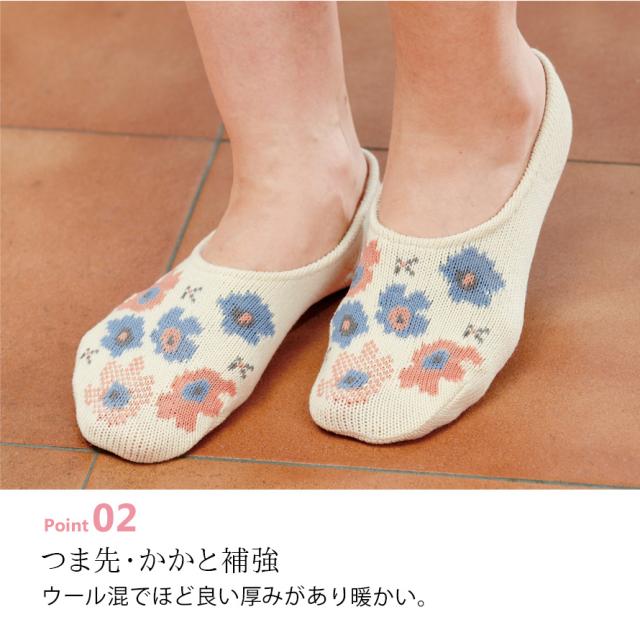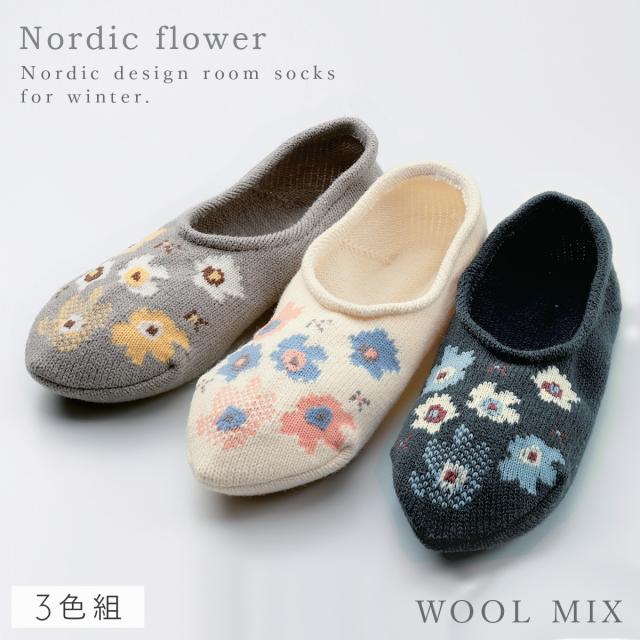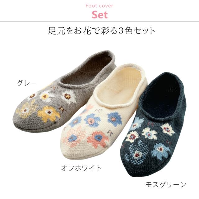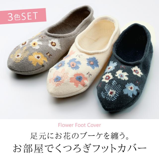 フットカバー レディース 3色組 22-25cm ルームシューズ 靴下 冬 あったか 暖かい 秋冬 厚手 重ね履き 部屋履き 室内履き 室内用 室内 足 足首 足元 冷え 防寒 花柄 北欧 女性 あったかブーケカバー