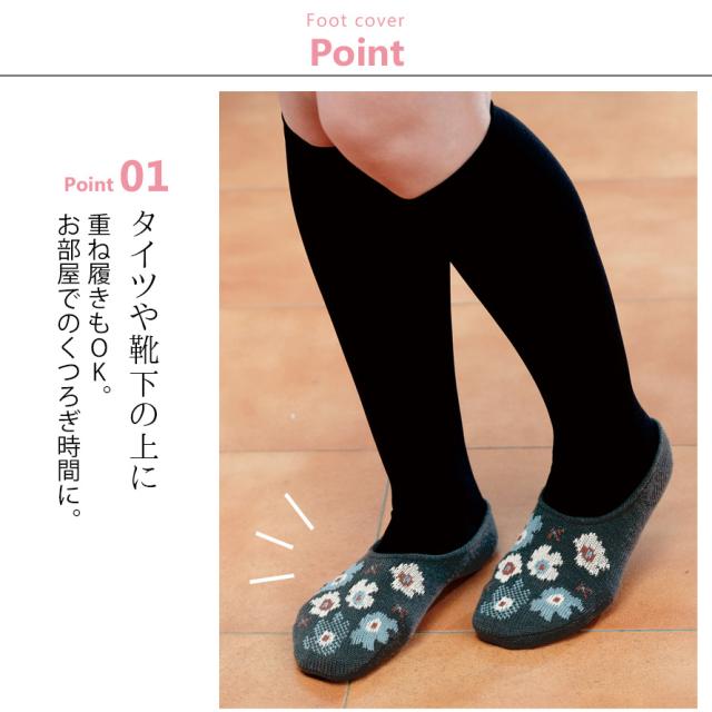 お花のブーケをイメージしたお洒落なカバー!お部屋のくつろぎはもちろん、タイツや靴下の上からなど、重ね履きにもおすすめのフットカバーです。