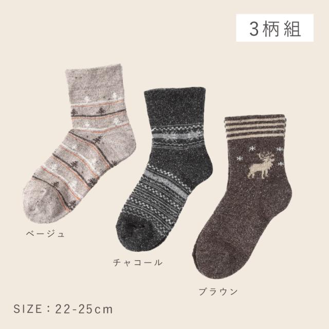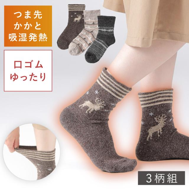 靴下 レディース 暖かい,冬 靴下 レディース,靴下,くつした,くつ下,ソックス,婦人靴下,セット,3足組,吸湿発熱,発熱素材,二重編み,ゴムなし,履き口,ゆったり,口ゴム,ゆるめ,よく伸びる,足首,ゆるい,ゆるめ,足のむくみ,むくみ,伸びる,動きやすい,履きやすい,締め付けない,しめつけない,締めつけない,締め付け感なし,跡が残らない,跡がつかない,跡が残らない靴下,締め付けない靴下,ゴムのかたがつかない,きつくない,痛くない,足首,高齢者,シニア,お年寄り,介護用,クルー丈,ネップ糸,つま先,かかと,カジュアル,柄,北欧,ノルディック柄,模様,トナカイ,シカ,動物,アニマル,雪柄,雪,結晶,スノー,ツリー,木,ベージュ,チャコール,グレー,ダークグレー,ブラウン,茶色,モカ,日本製,おしゃれ,お洒落,オシャレ,かわいい,可愛い,秋,冬,ぽかぽか,ポカポカ,暖かい,暖か,あたたかい,あったか,あったか温め,温活,防寒,冷え症,冷え性,対策,冷え対策,寒さ対策,冷え取り,冷えとり,防寒冷え,秋冬,真冬,大人,大人用,レディース,女性,女性用,22cm,22センチ,23cm,23センチ,24cm,24センチ,25cm,25センチ,22-25cm,