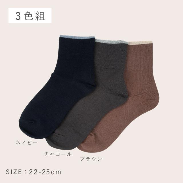 履き口 ゆったり 靴下 レディース 冬 暖かい 【3色組】 22-25cm ゴムなし 薄手 秋冬 あったか おしゃれ 【 口ゴムなしのゆったりソックス 】 足首 ゆるめ 口ゴムゆったり 締め付けない むくみ 介護 シニア まとめ買い 3足 セット 薄くてもあったかゴムなしソックス