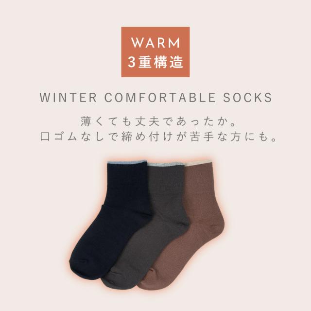 靴下 レディース 暖かい,冬 靴下 レディース,靴下,くつした,くつ下,ソックス,婦人靴下,セット,3足組,ゴムなし,履き口,ゆったり,口ゴム,ゆるめ,よく伸びる,足首,ゆるい,ゆるめ,足のむくみ,むくみ,伸びる,動きやすい,履きやすい,締め付けない,しめつけない,締めつけない,締め付け感なし,跡が残らない,跡がつかない,跡が残らない靴下,締め付けない靴下,ゴムのかたがつかない,きつくない,痛くない,足首,高齢者,シニア,お年寄り,介護用,クルー丈,薄手,薄い,丈夫,毛玉になりにくい,ウール混,毛混,無地,ネイビー,紺,ブルー,青,チャコール,グレー,ダークグレー,ブラウン,茶色,シンプル,日本製,おしゃれ,お洒落,オシャレ,かわいい,可愛い,秋,冬,ぽかぽか,ポカポカ,暖かい,暖か,あたたかい,あったか,あったか温め,温活,防寒,冷え症,冷え性,対策,冷え対策,寒さ対策,冷え取り,冷えとり,防寒冷え,秋冬,真冬,大人,大人用,レディース,女性,女性用,22cm,22センチ,23cm,23センチ,24cm,24センチ,25cm,25センチ,22-25cm,
