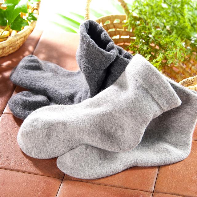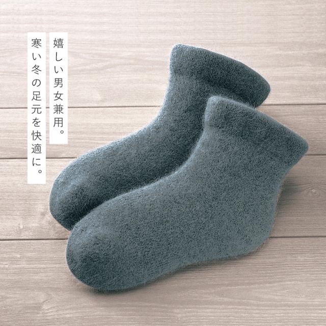 内側パイル編みで暖か。脱ぎ履き簡単の男女兼用厚手ソックス。裏側はパイル編みであったか!アンゴラウールを使用しています。