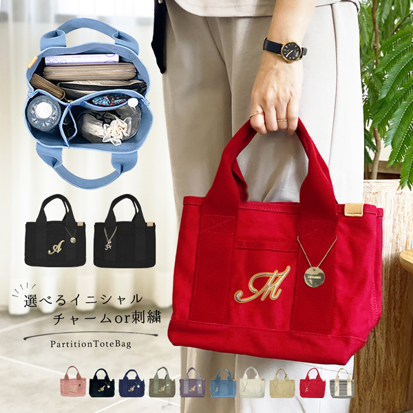 イニシャル 仕切り トートバッグ>>
