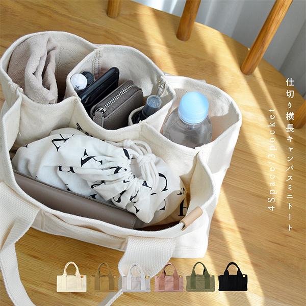 ミニトートバッグ レディース キャンバス 仕切り 横長トート ミニバッグ 小さめ ランチバッグ エコバッグ ハンドバッグ かわいい 可愛い 無地 おしゃれ コットン ミニトート 小さい バッグ 女性 プレゼント ギフト 母の日 プレゼント ギフト