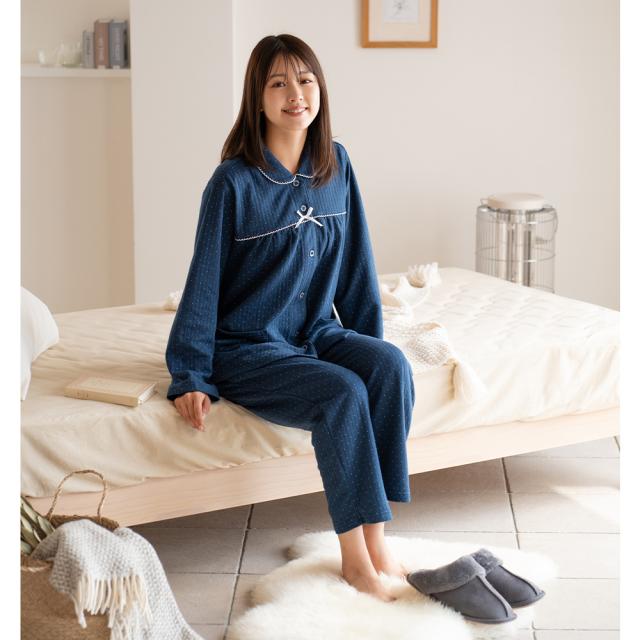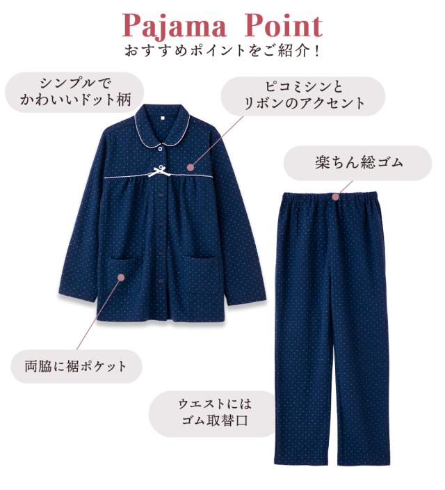 かわいいパジャマでいい夢を。シンプルかわいいふわふわキルトのドット柄パジャマ