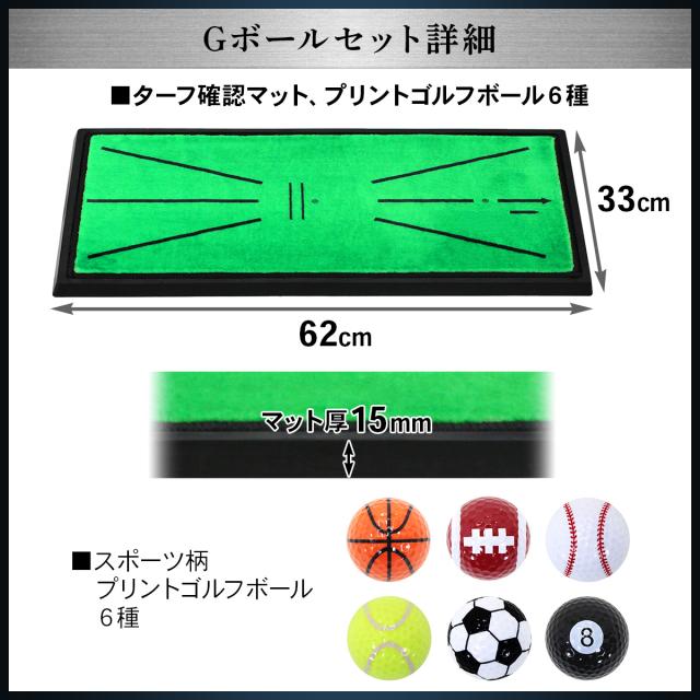 ターフ確認マット、スポーツ柄ゴルフボール6個