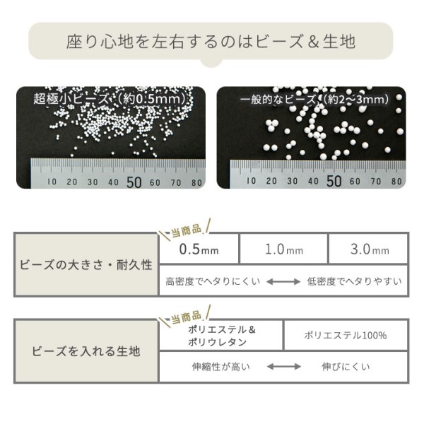 ビーズ:発泡ポリスチレンビーズ(直径0.5mm)