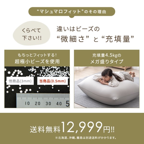マシュマロフィット 超極小ビーズ メガ盛4.5kg ビーズクッション マイクロビーズ 0.5mm 特大 一人掛け 洗える カバー コンパクト ソファ ソファー 座椅子 ビーズソファ ビーズソファー ビーズ クッション 背もたれ ローソファー【商品番号:67300008】