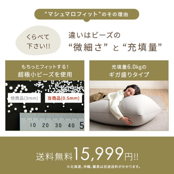 マシュマロフィット 超極小ビーズ ギガ盛6.0kg ビーズクッション マイクロビーズ 0.5mm 特大 二人掛け 洗える カバー ソファ ソファー 座椅子 ビーズソファ ビーズ クッション ローソファー ソファーベッド リモートワーク【商品番号:67300009】