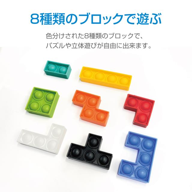 【8種類のブロックで遊ぶ】色分けされた8種類のブロックで、パズルや立体遊びが自由にできます。