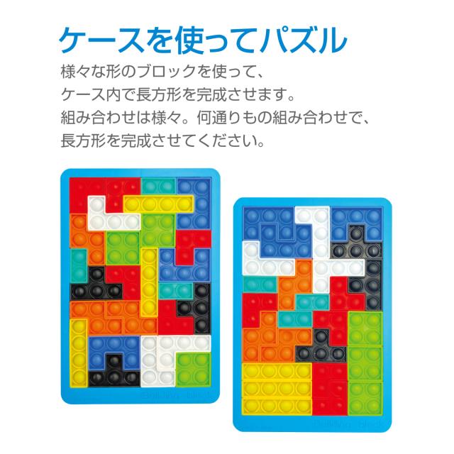 【ケースを使ってパズル】様々な形のブロックを使って、ケース内で長方形を完成させます。組み合わせは様々、何通りもの組合わせで、長方形を完成させてください。