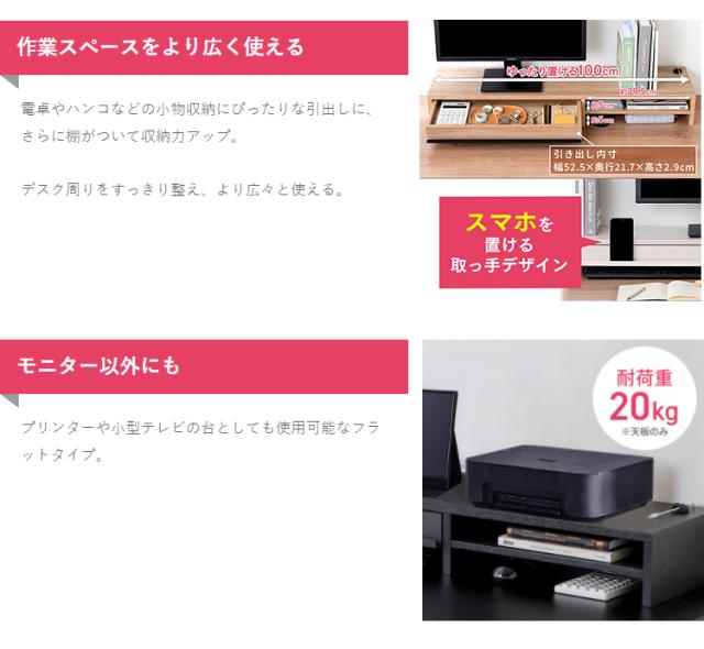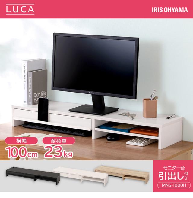 モニター台 引出し付き モニター 台 アイリスオーヤマ MNS-1000H-BO MNS-1000H-OW MNS-1000H-LN 引き出し 引出 スタンド PC 卓上 パソコン台 ラック キーボード収納