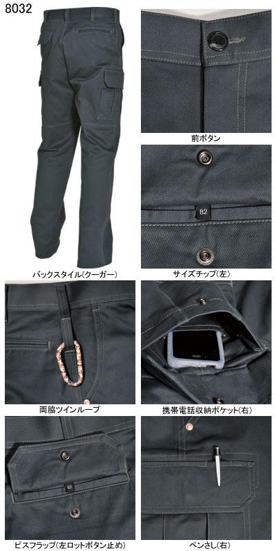 作業服 秋冬用 バートル BURTLE 作業着 8032 カーゴパンツ W73-W88