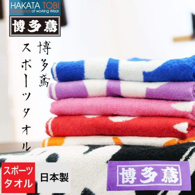 博多鳶 スポーツタオル 作業用 日本製 国産タオル 綿100% おしゃれ コットン ロゴ入り タキヤマ ネコポス 即日出荷 ht-st2003