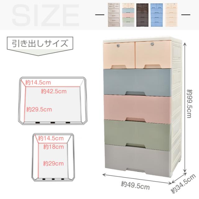 新生活 収納ボックス 収納ケース 5段 タンス チェスト プラスチック 鍵つき 組み立て式 整理 ny423