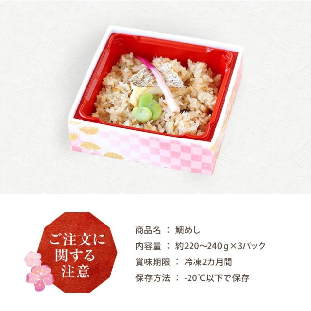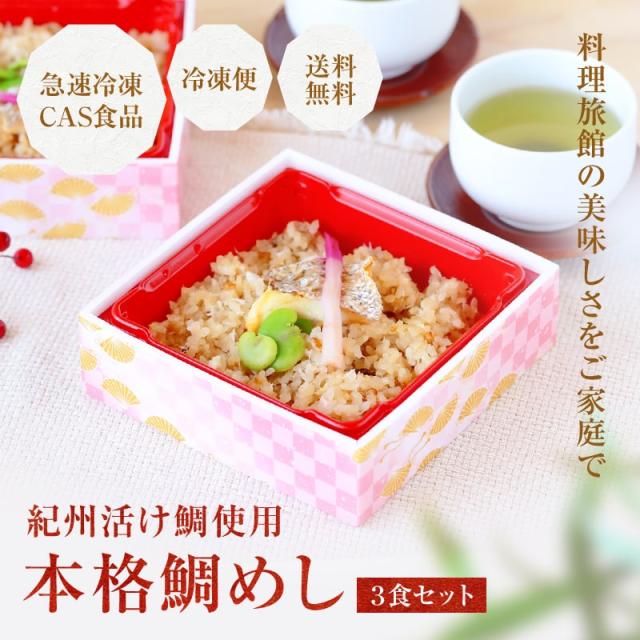 レンジで出来る!紀州活け鯛使用 本格鯛めし 3食セット 料理旅館の炊きたての美味しさを簡単手軽にご家庭で。 真空包装 CAS冷凍 炊き立ての美味しさをそのまま! 鯛飯 通販 お取り寄せ 送料無料 冷凍食品 お惣菜 ハレの日ごはん 年末 年始 ふみこ農園 mom kr