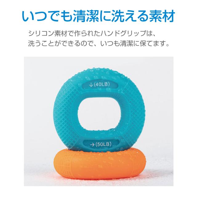何かをしながら片手で握力トレーニング。直径7.8cmのコンパクト設計。力の入れる方向によって負荷が変化。滑りにくく、水洗いできるシリコン素材。