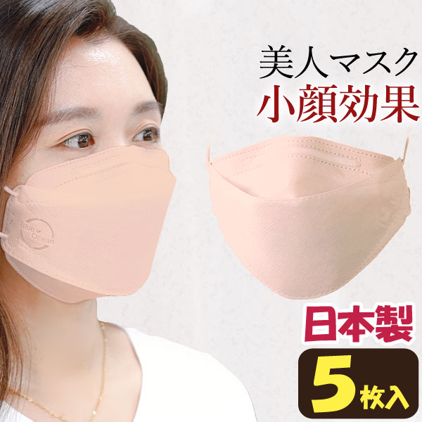 日本製 ダイヤモンド3Dマスク 立体型 BLUE OCEAN 美人(ピンク)(5枚入)【新井】