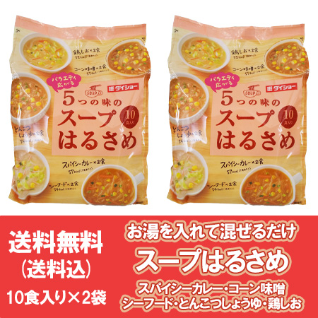 春雨スープ 送料無料 はるさめ スープ バラエティ広がる 5つの味の スープはるさめ カレー / コーン 味噌 / シーフード / とんこつ しょうゆ / 鶏しお 1袋(10食入)×2袋 価格 2000 円 ポッキリ 送料無料