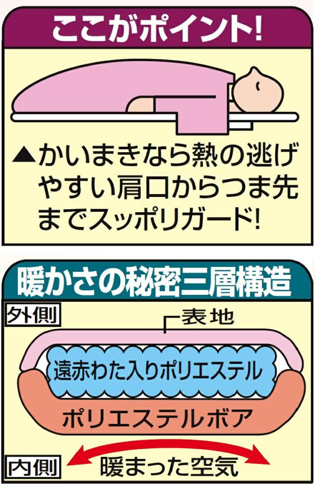 かいまきなら熱の逃げやすい肩口からつま先までスッポリガード!