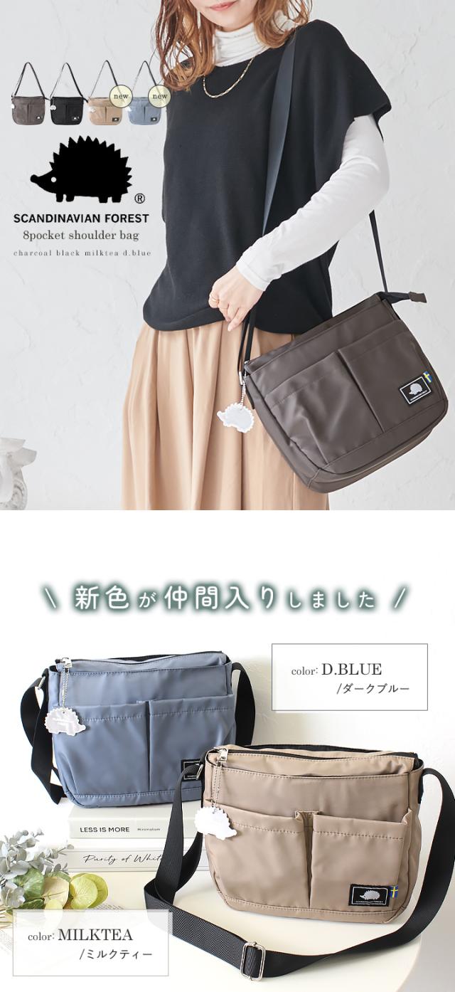 【全4色】SCANDINAVIAN FOREST/北欧カラーにハリネズミがかわいい!男女兼用できる多機能ショルダーバッグ。