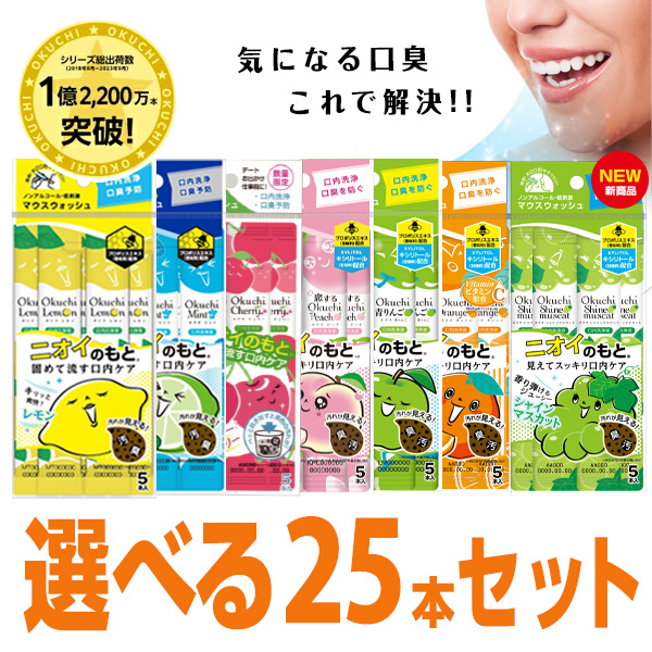 マウスウォッシュ選べる25本セット 口臭ケア オクチレモン オクチミント オクチチェリー オクチオレンジ 口臭 口内洗浄液 携帯 個包装 口臭予防 ノンアルコール プロポリス ニオケア 使い切りタイプ 使いきり 持ち運び お口レモン 口内 5セット スティック デンタルケア
