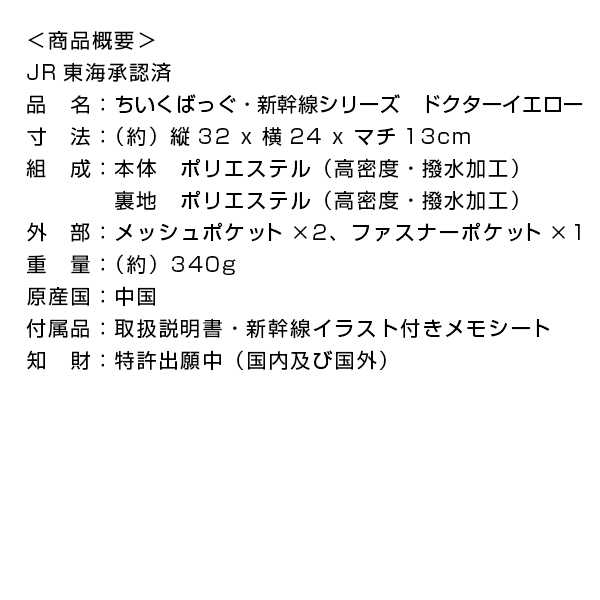 品名:ちいくばっぐ・新幹線シリーズ(ドクターイエロー)