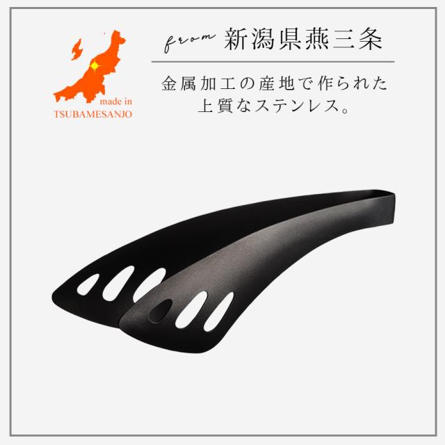 燕三条,ステンレス,トング,キッチントング,ミニトング,ミニ,小さめ,小さい,ミニトング ミニ 小さめ 小さい 21cm,穴あき,ブラック,黒,フッ素加工,取り分け,盛り付け,ギフト,プレゼント,誕生日,誕生日プレゼント,日本製,高級,高級感,調理器具,調理道具,キッチンツール,キッチン,台所,調理,料理,家事,キッチン用品,キッチン雑貨,台所用品,キッチンアイテム,キッチングッズ,時短,アイデア,便利グッズ,おすすめ,オススメ,人気,清潔,衛生的,汚れが落ちやすい,洗いやすい,乾きやすい,錆びにくい,サビにくい,丈夫,上質,高品質