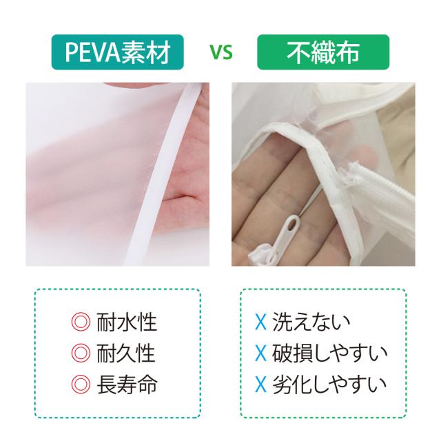 つや消し半透明のPEVA素材で、丈夫で中が見えやすく探しやすい。