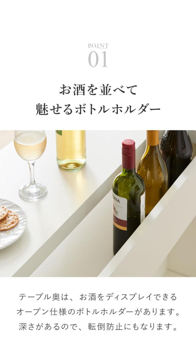 テーブル奧は、お酒などが収納できるようにオープンになっているので、おしゃれにディスプレイもできます。