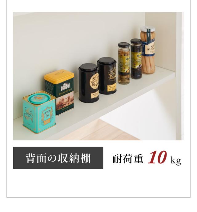 背面にも収納スペースがあるので、ビン類や調味料などの収納にも便利です。