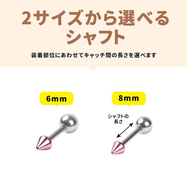 カラフルコーン ストレートバーベル 16G 18G サージカルステンレス イヤーロブ ヘリックス 軟骨ピアス ボディピアス コーン キャッチ