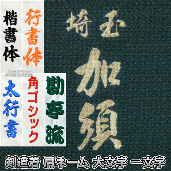 剣道 剣道着 肩ネーム刺繍 大文字(約5cm角) 1文字 楷書体/行書体/太めの行書体/角ゴシック体/勘亭流 剣道衣