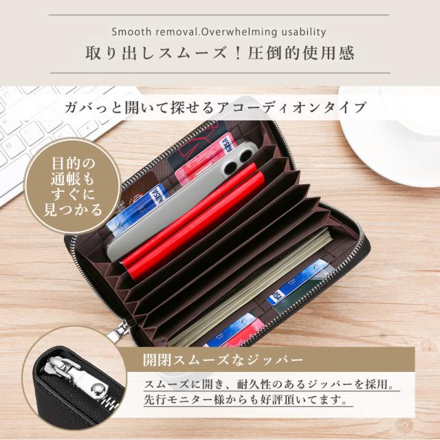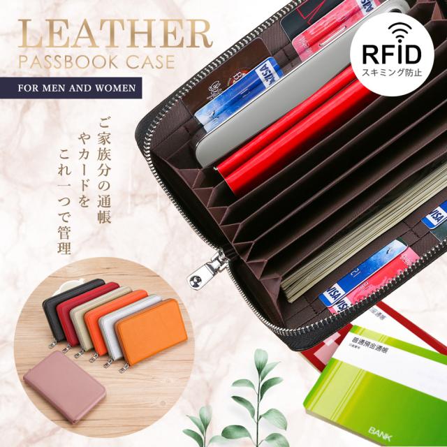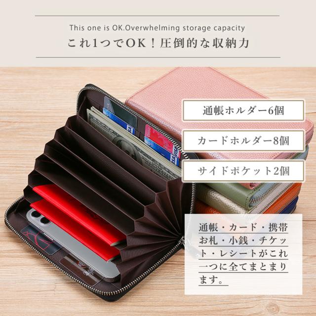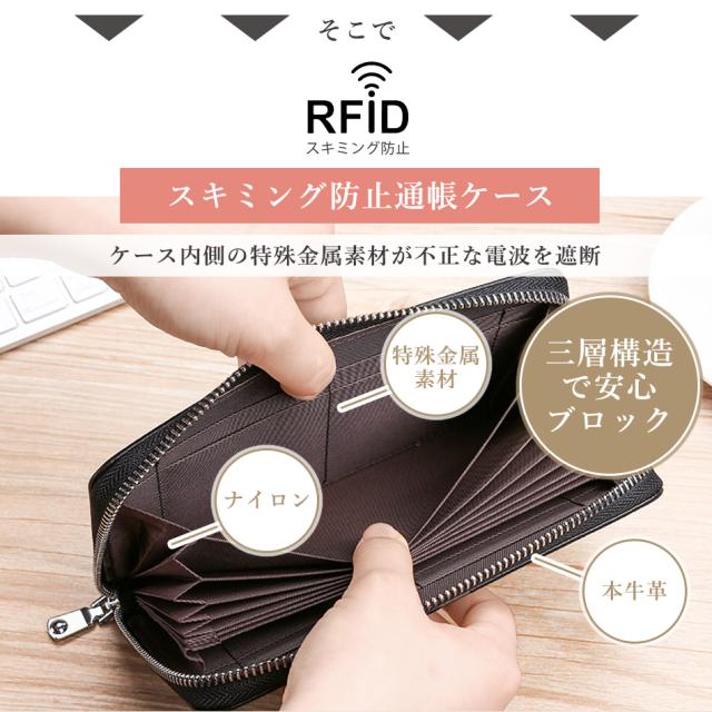 通帳ケース 本革 牛革 レディース メンズ じゃばら 磁気 スキミング 防止 カード入れ ファスナー 大容量 おしゃれ 通帳入れ 名刺ケース クレジットカード RFID