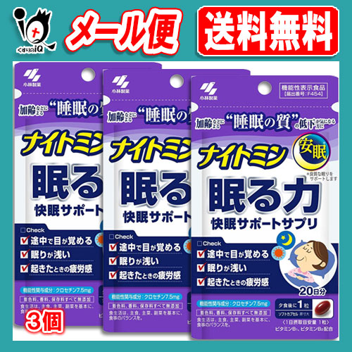 【機能性表示食品】ナイトミン 眠る力 快眠サポートサプリ 20粒(20日分)×3個セット 【小林製薬】加齢などによる“睡眠の質”の低下が気になる方に