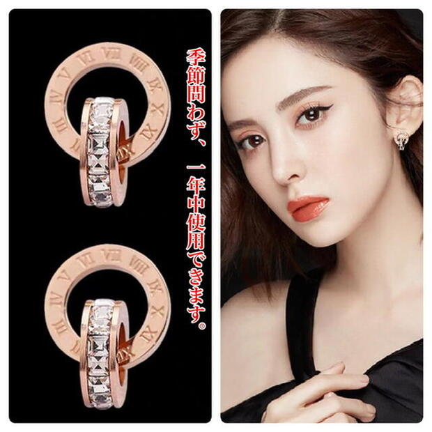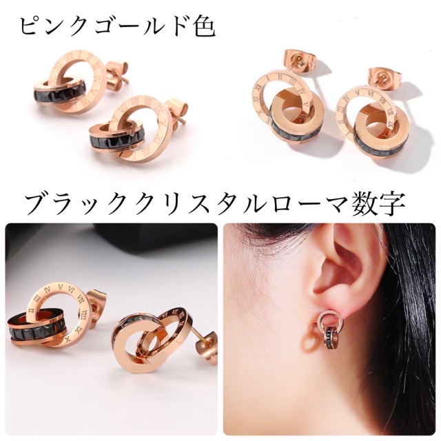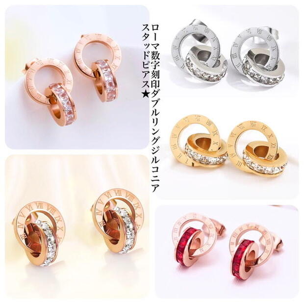 ローマ数字刻印ダブルリングジルコニアスタッドピアス★
