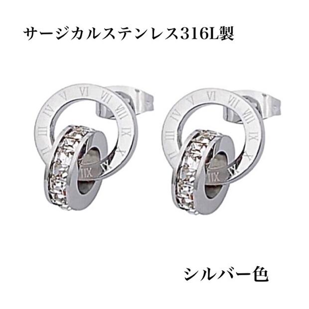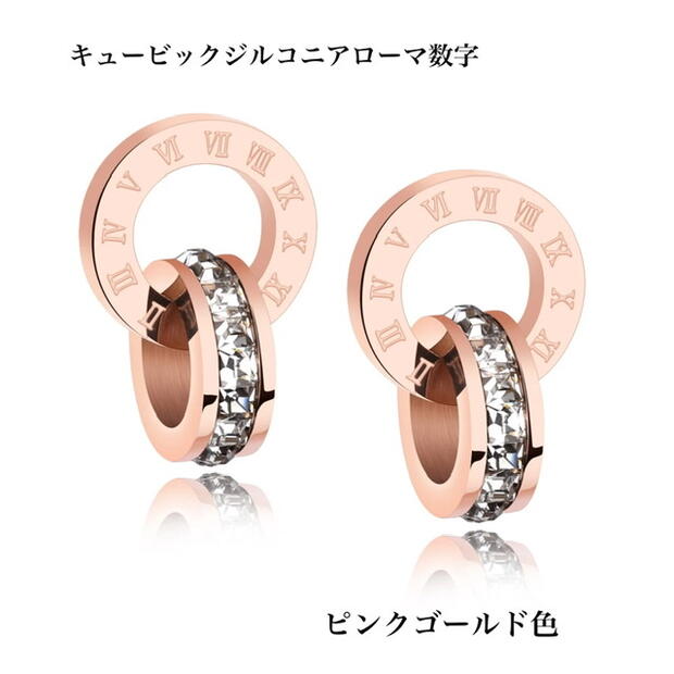 サージカルステンレスピアス アレルギー対応 ローマ数字ピアス CZダイヤ(キュービックジルコニア) レディースピアス 両耳 k18 ピンクゴールド ゴールド シルバー ステンレス クリスタル 2連ピアス ローマ字 カジュアル かわいい おしゃれ プレゼント