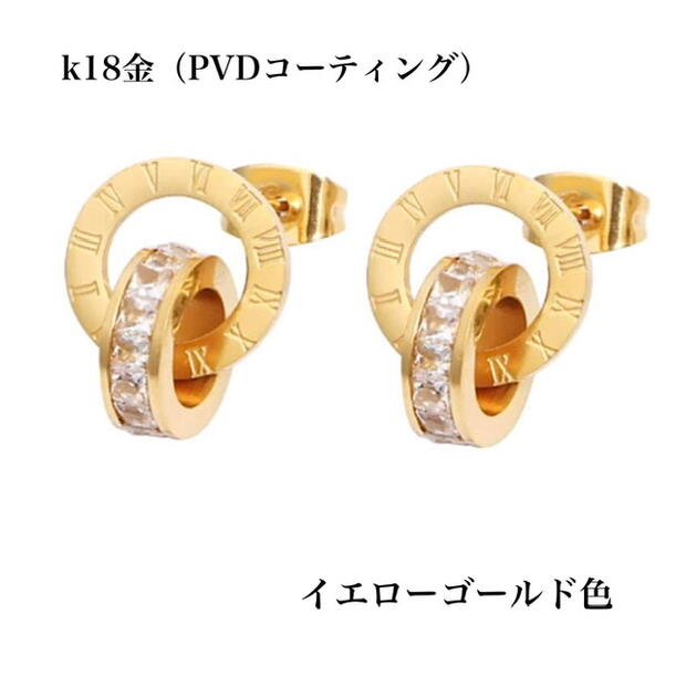 サージカルステンレス316L(医療用ステンレス)に18金(PVDコーティング)非常に変色しにくい、傷に強い。輝き長持ち!CZダイヤ(キュービック・ジルコニア)は、人工石です。