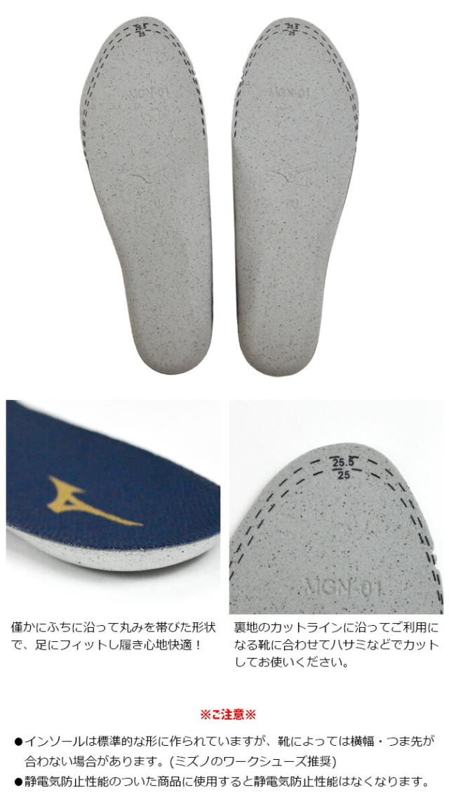 【2点までネコポス可】ミズノ インソール ワーキングシューズ用 安全靴用 22.0cm-30.0cm 抗菌 防臭 通気性 中敷き メンズ レディース mizuno F1GU2200