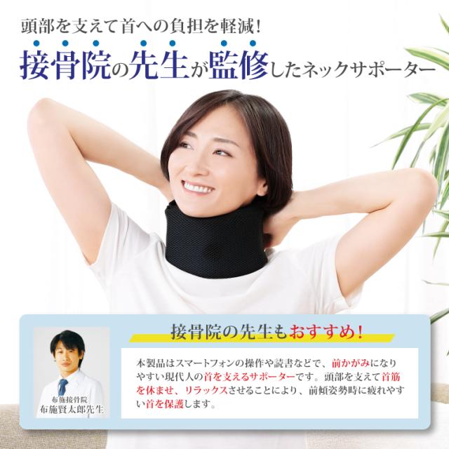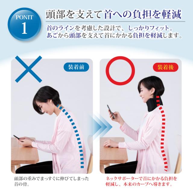 前かがみになりやすい現代人の首筋を支えるネックサポーター。