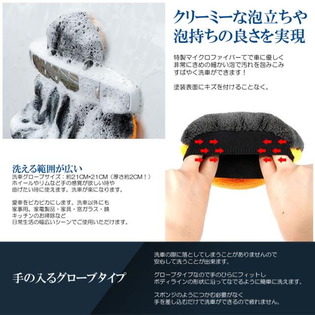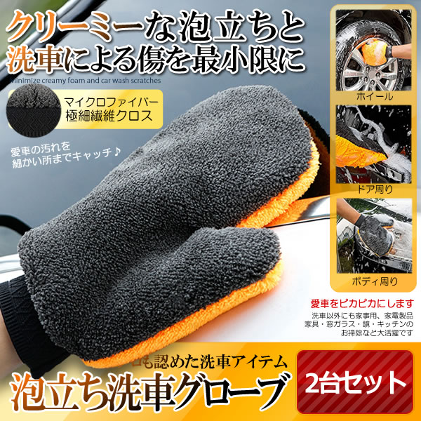 2個セット 超泡立つ 洗車グローブ タオル スポンジ マイクロファイバー 傷防止 ブラシ 洗浄 ボディ SUV ホイール AWAGURO