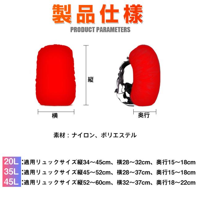 45L:適用リュックサイズ縦52〜60cm、横32〜37cm、奥行18〜22cm ;