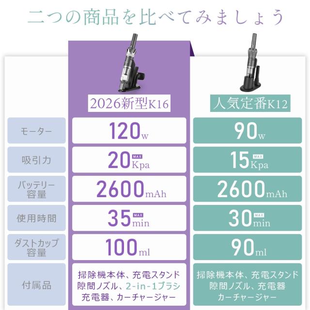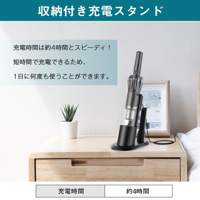 - 部屋のちょっとした掃除や車内掃除用に購入しました。小型なのに吸引力が強力で気持ちがいいです。付属品も充実しているし、セール時に購入できたこともありお得に手に入れられました。