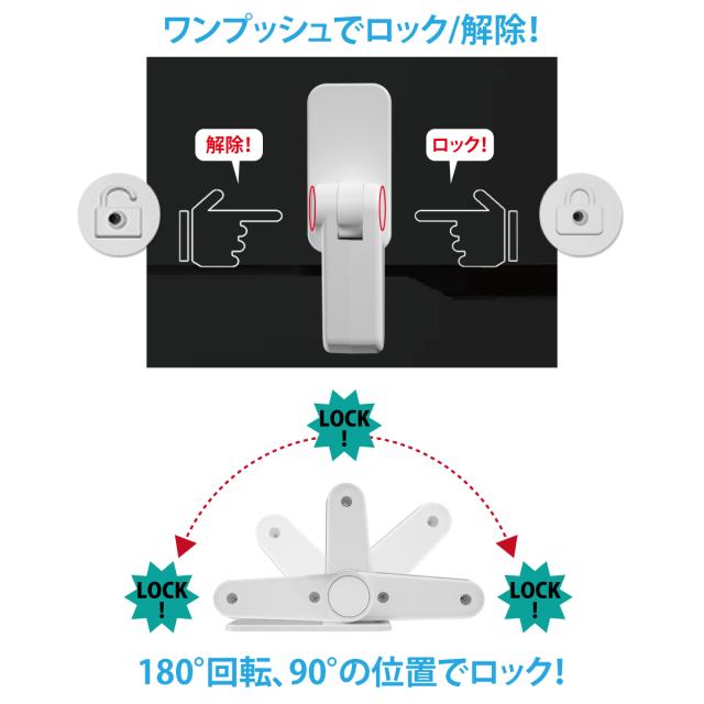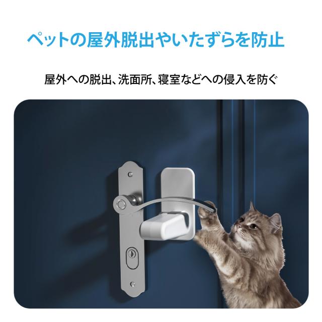 - 猫がドアを開けてしまうため購入しました。 以前違うドアロックを使用した時はすぐに攻略されてしまい困っていましたが今回はびくともしません。ロックもワンタッチで使いやすく最高です。
