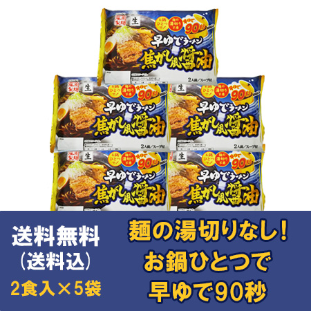焦がし醤油ラーメン 送料無料 生ラーメン 早ゆで90秒 生 ラーメン お鍋ひとつで 焦がし 醤油ラーメン 1袋(2食入)×5袋 しょうゆ 生ラーメン スープ 付 麺類