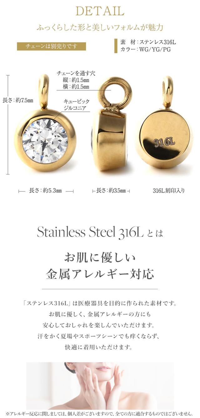 ペンダントトップ フクリン 覆輪 金属アレルギー対応 ネックレス ペンダント トップ ヘッド ステンレス316L サージカルステンレス 医療用 レディース 一粒 ジルコニア cz ゴールド 大ぶり ジュエリー アクセサリー 誕生日 ギフト クリスマス プレゼント