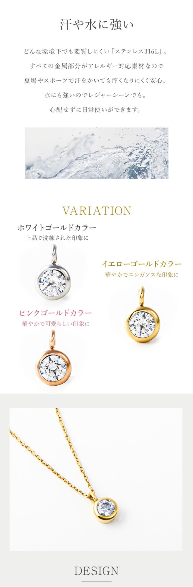 「 ステンレス316L 」を選んだ理由「ステンレス316L」は、”錆びにくく変色も少ない”という特徴があります。そのため、汗などに接触しても金属が溶け出しにくく、アレルギー反応を起こしにくいので、近年金属アレルギー対応のジュエリー素材として使用されています。アレルギーの方でも安心・安全にオシャレを楽しんでいただきたいからこそ、素材にこだわりました。