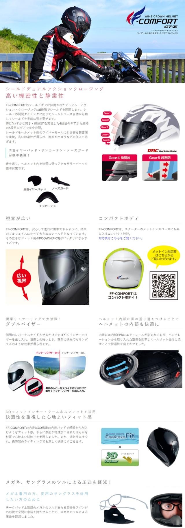 ★送料無料★WINS FF-COMFORT GTZ フルフェイスヘルメット インナーバイザー付き 軽量コンパクトフルフェイス(エフ・エフコンフォート)FF-COMFORT GT-Z